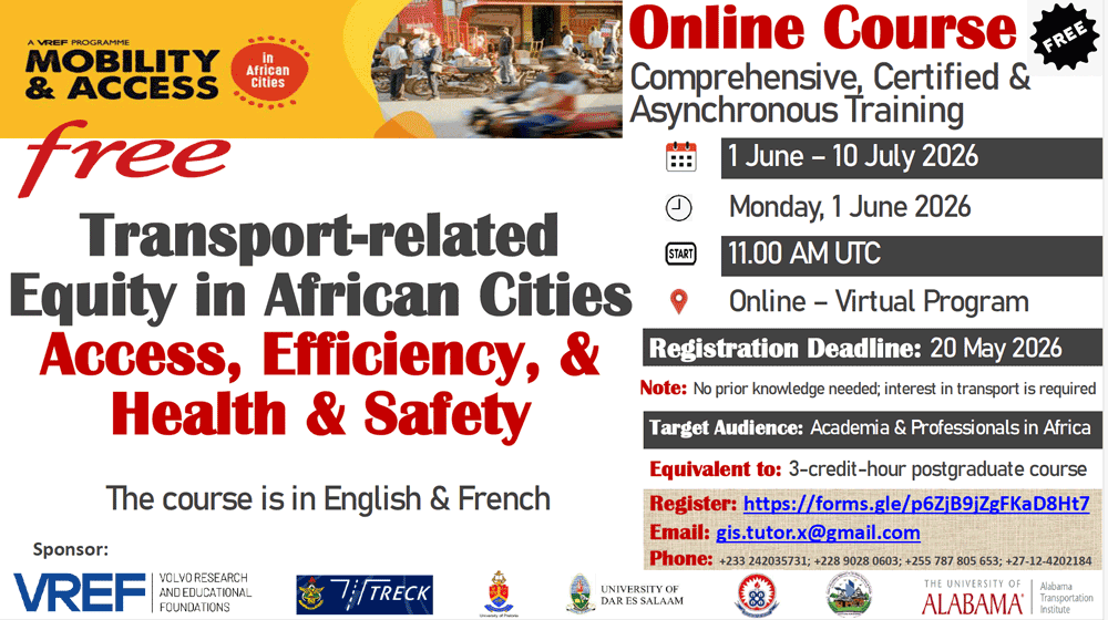 Are you looking to deepen your expertise in Africas’ urban mobility? Registration is now open for a comprehensive, certified online course: ”Transport-related Equity in African Cities: Access, Efficiency, & Health & Safety.”